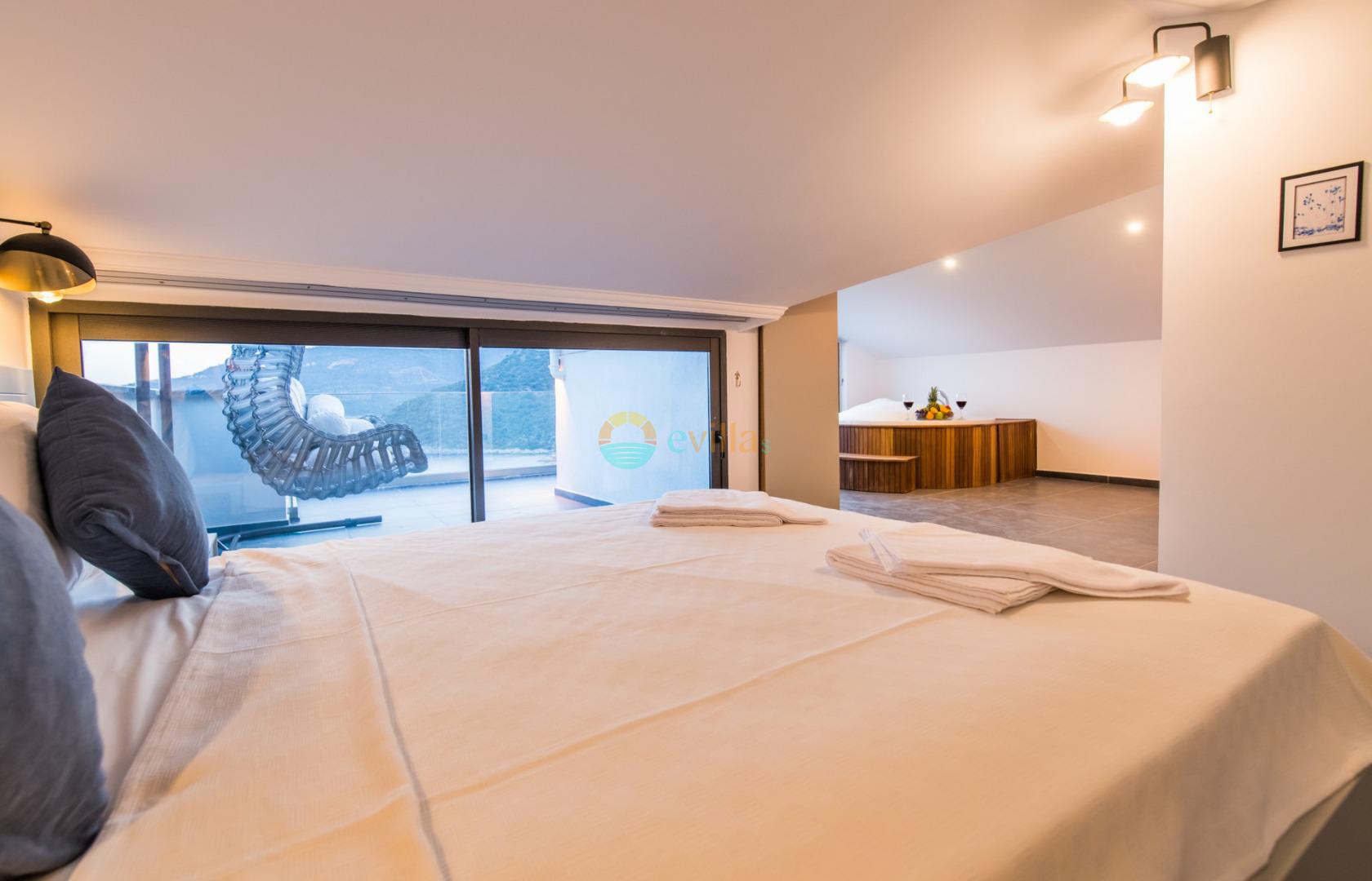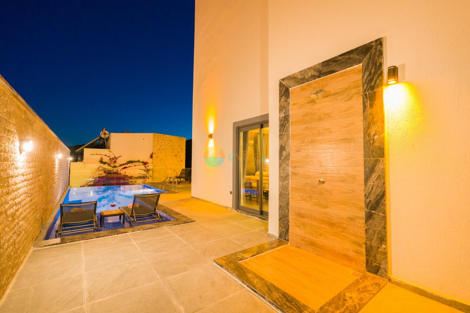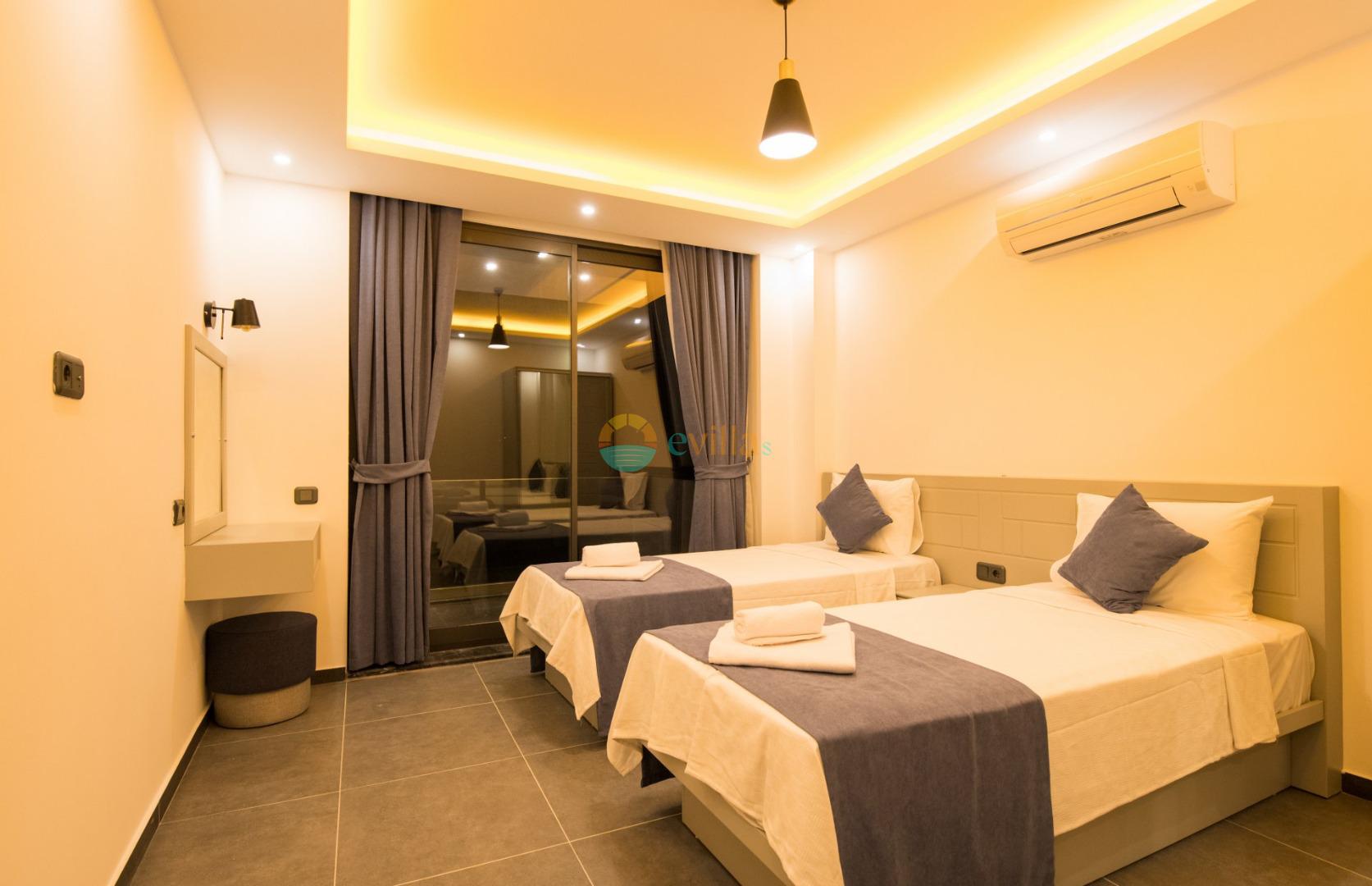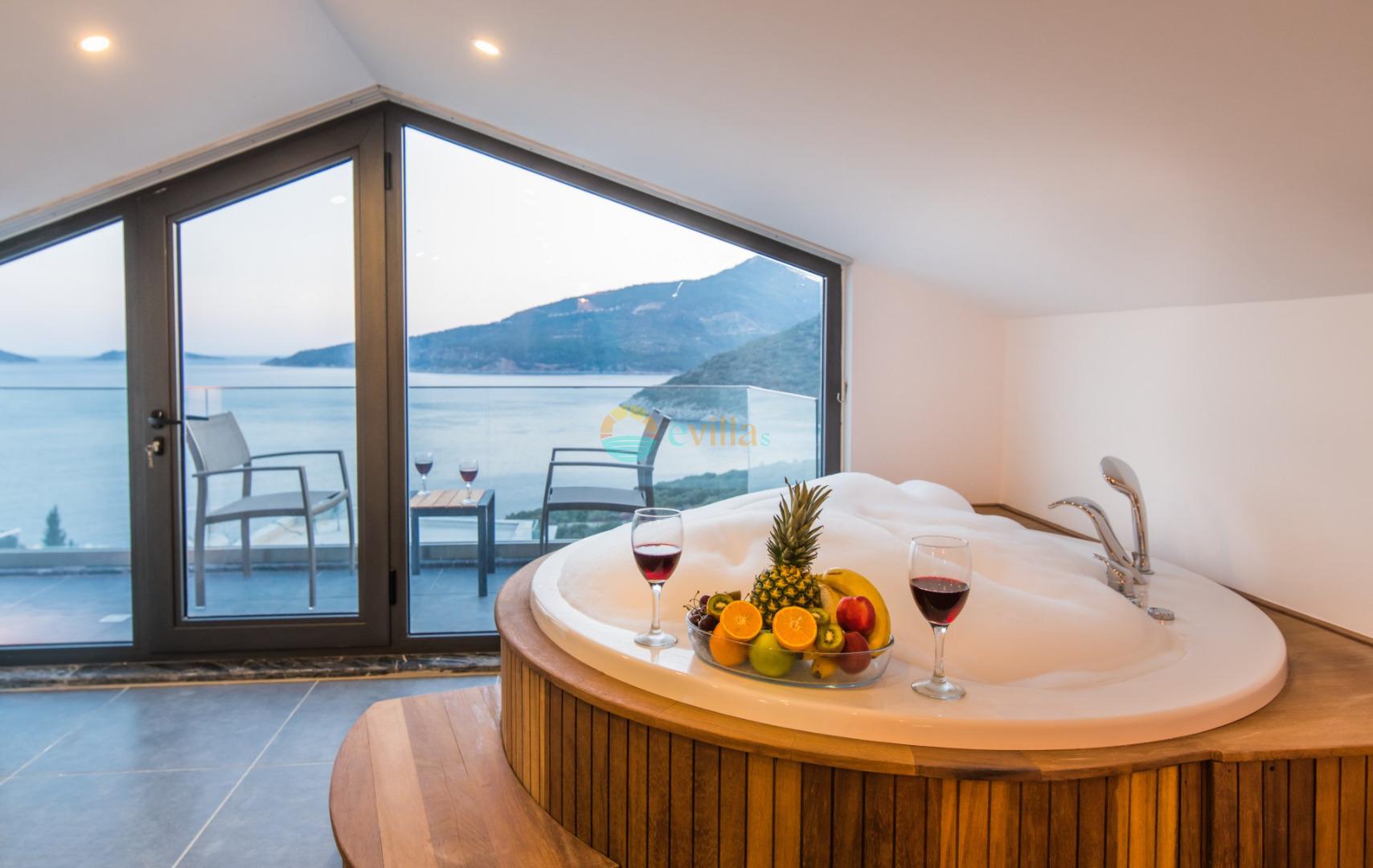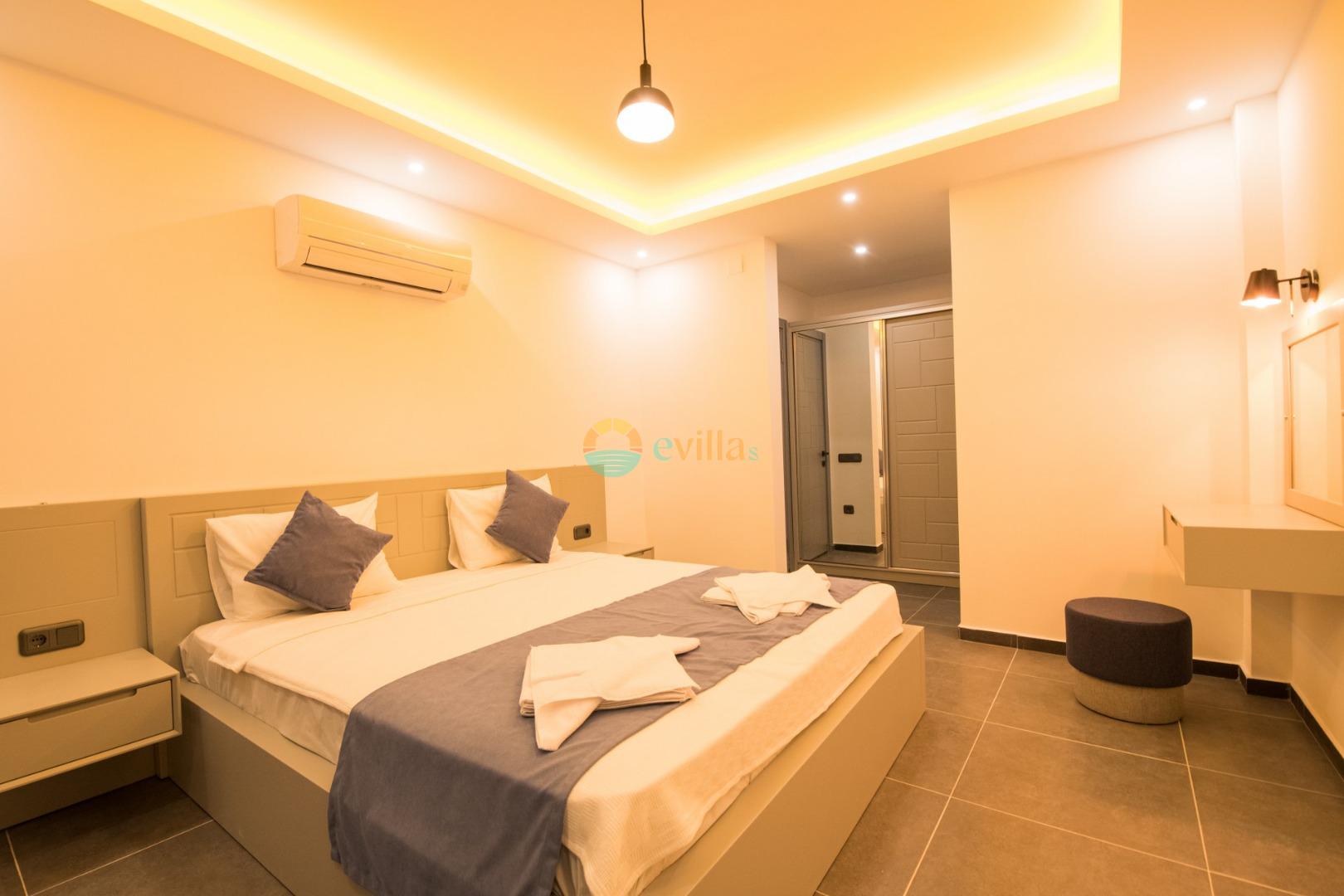 Unsere Villa ist eine Mietvilla mit einer sehr großen Struktur, 4 Schlafzimmern und einer Unterkunftskapazität von 10 Personen, gelegen in der Region Kalamar, dem einzigartigen Schönheitszentrum von Kalkan. Es ist eine ideale Villa, insbesondere für große Familiengruppen. Von Ihrem Zimmer aus können Sie bequem den Meerblick genießen. Ein Schlafzimmer verfügt über einen Whirlpool. Aufgrund der Nähe zum Zentrum und zum Meer gehört sie zu unseren am häufigsten bevorzugten Villen.