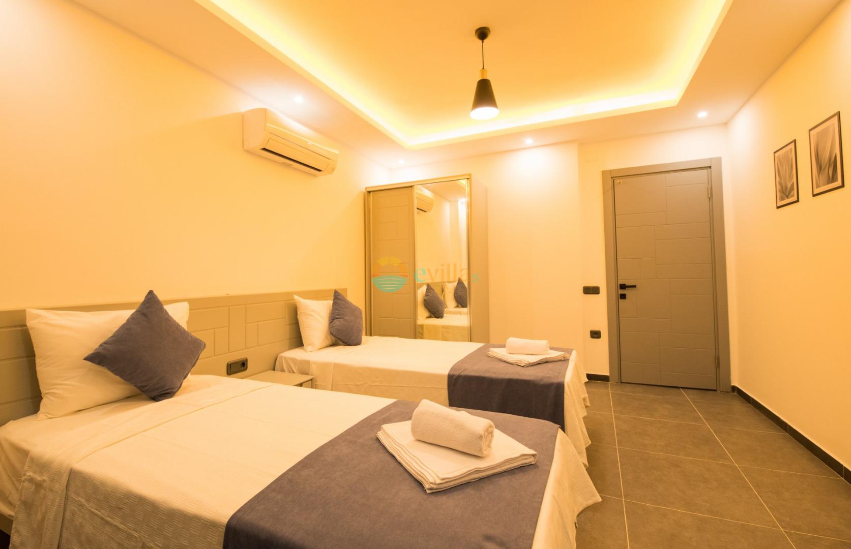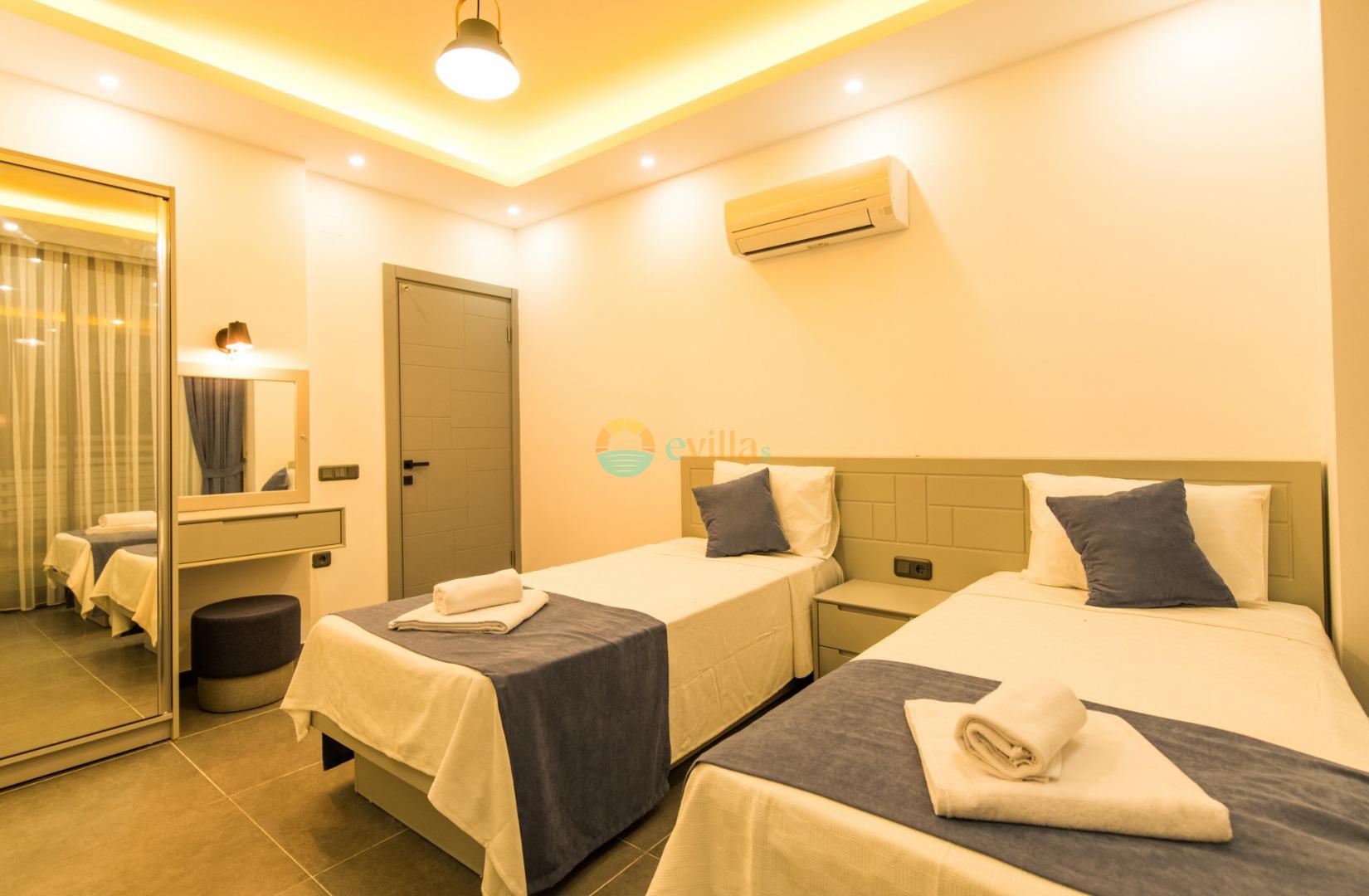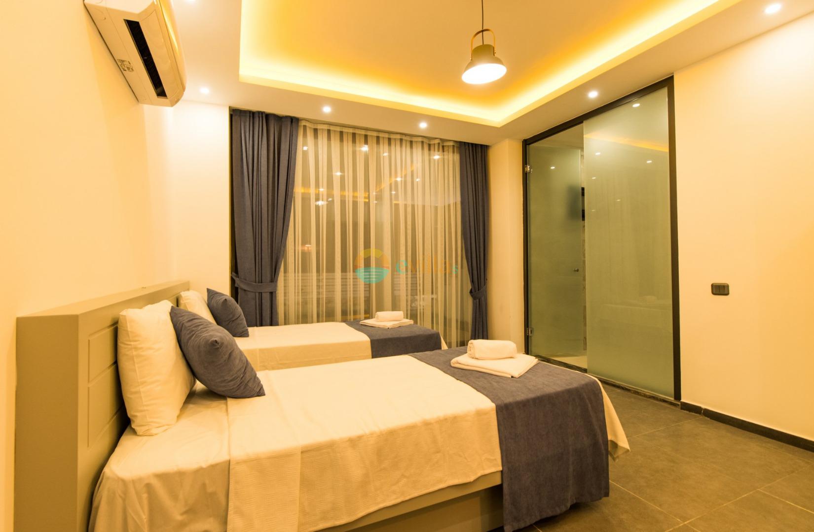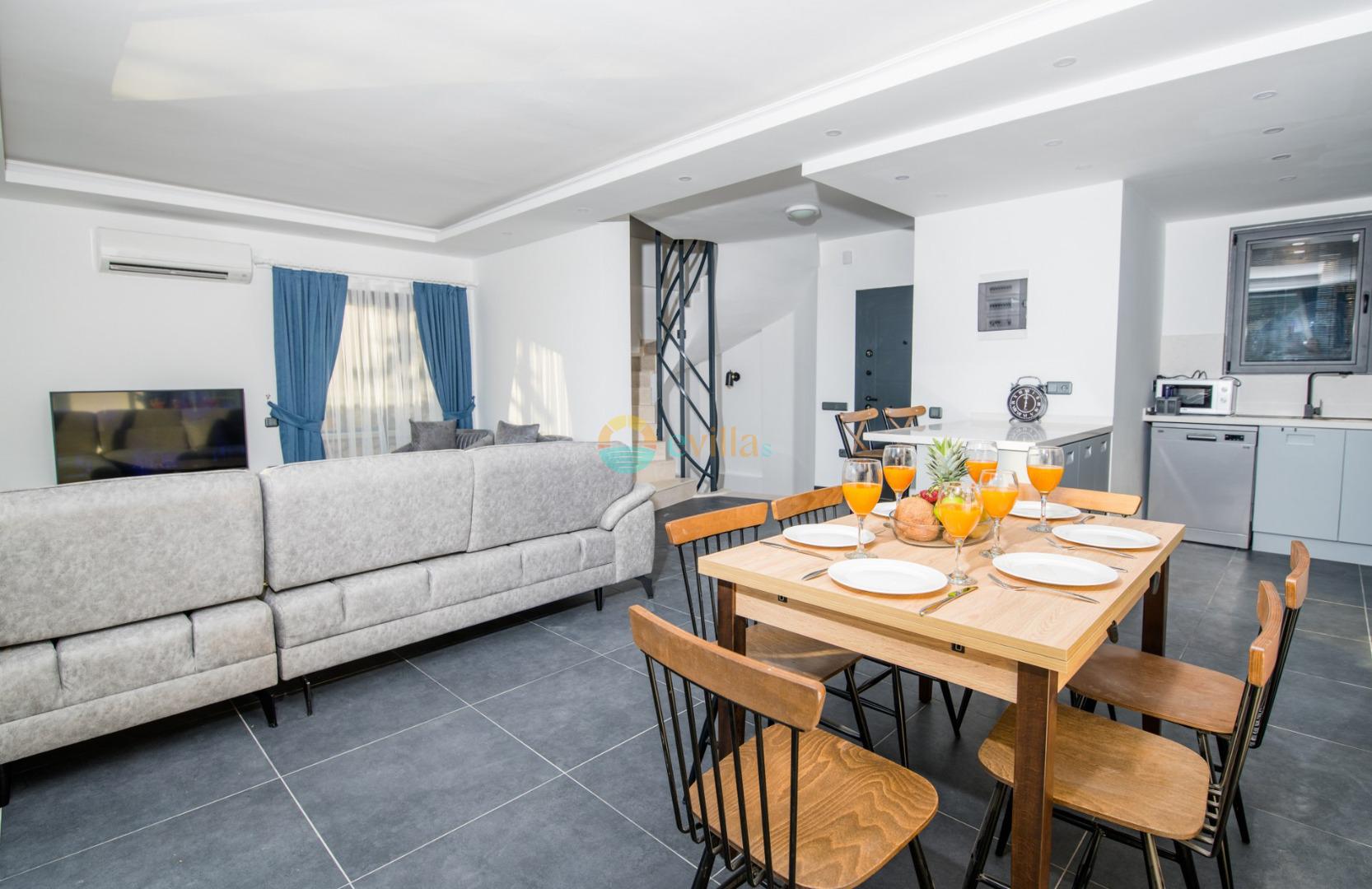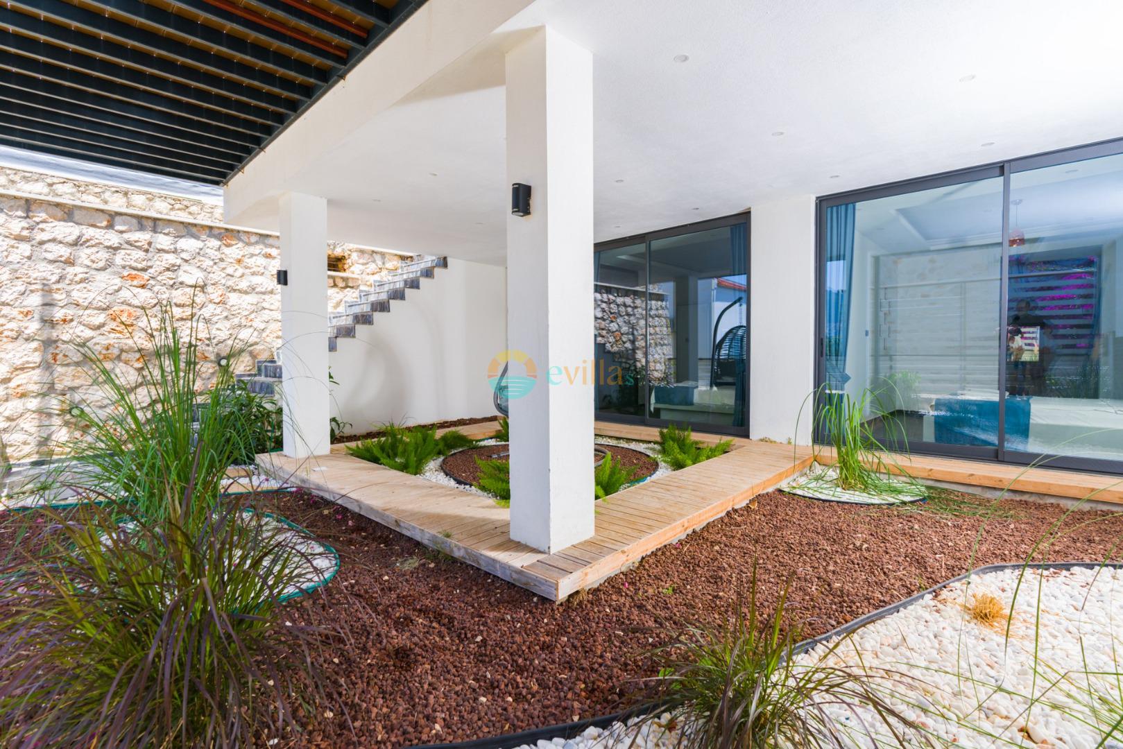 Unsere Villa ist eine Mietvilla mit einer sehr großen Struktur, 4 Schlafzimmern und einer Unterkunftskapazität von 10 Personen, gelegen in der Region Kalamar, dem einzigartigen Schönheitszentrum von Kalkan. Es ist eine ideale Villa, insbesondere für große Familiengruppen. Von Ihrem Zimmer aus können Sie bequem den Meerblick genießen. Ein Schlafzimmer verfügt über einen Whirlpool. Aufgrund der Nähe zum Zentrum und zum Meer gehört sie zu unseren am häufigsten bevorzugten Villen.