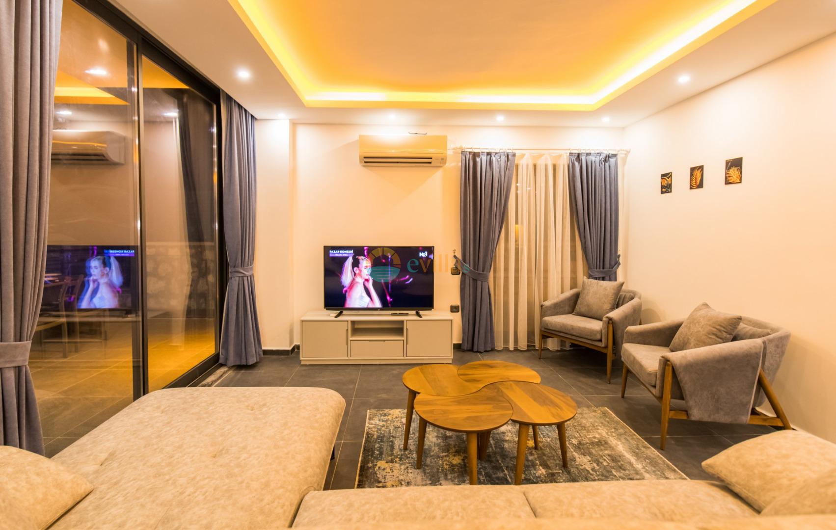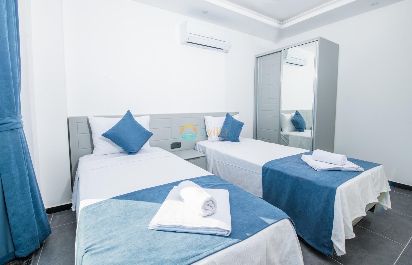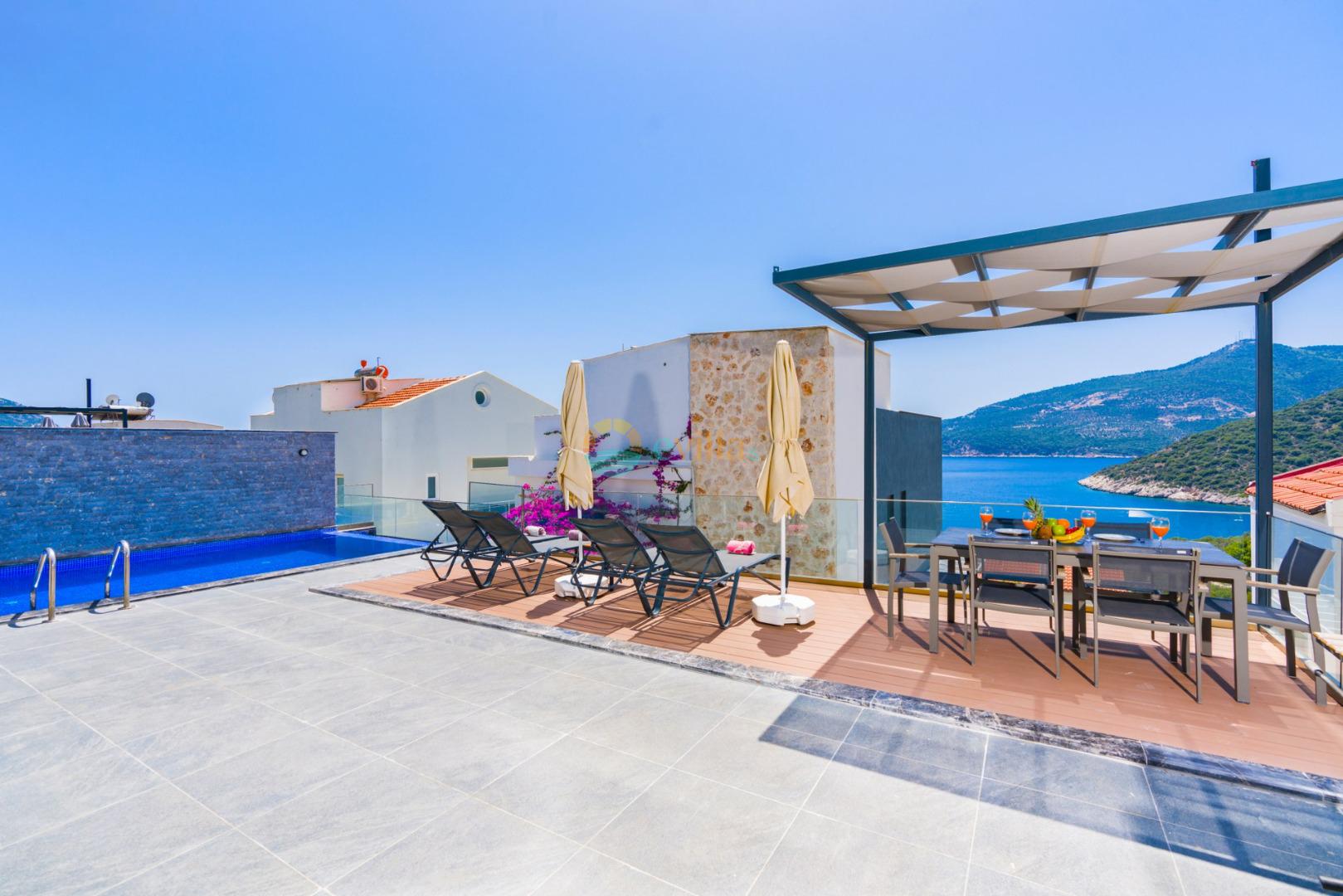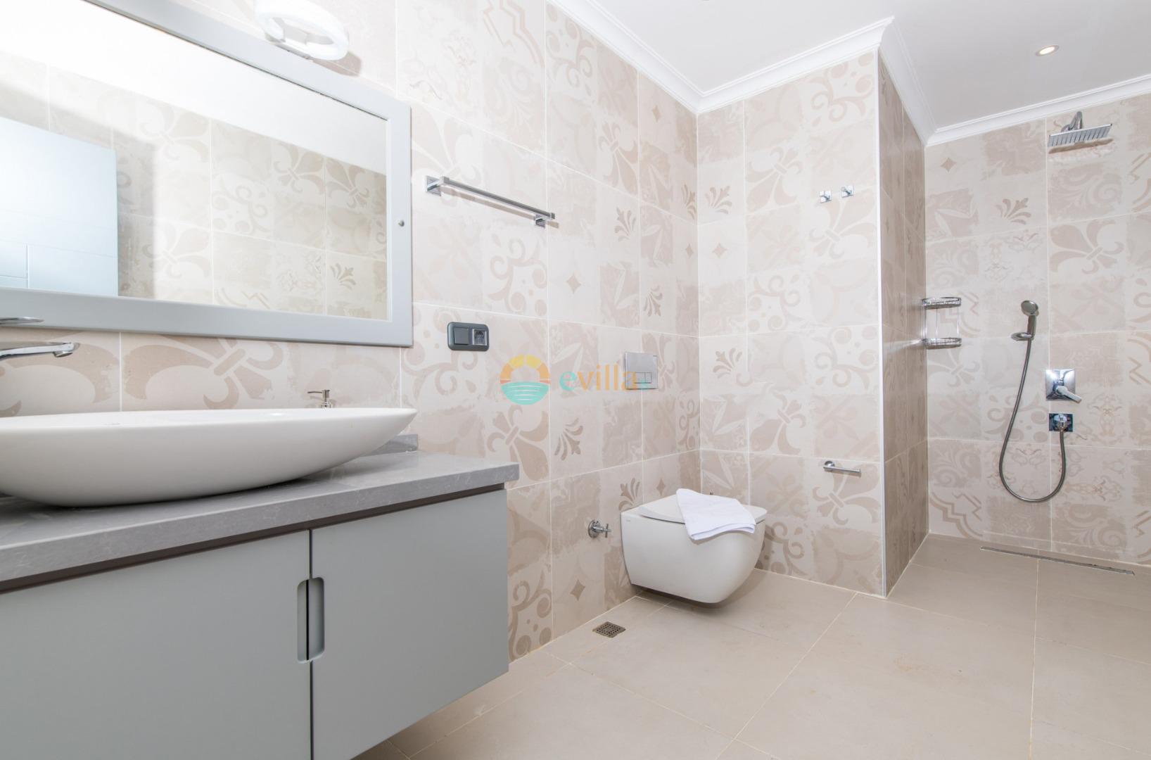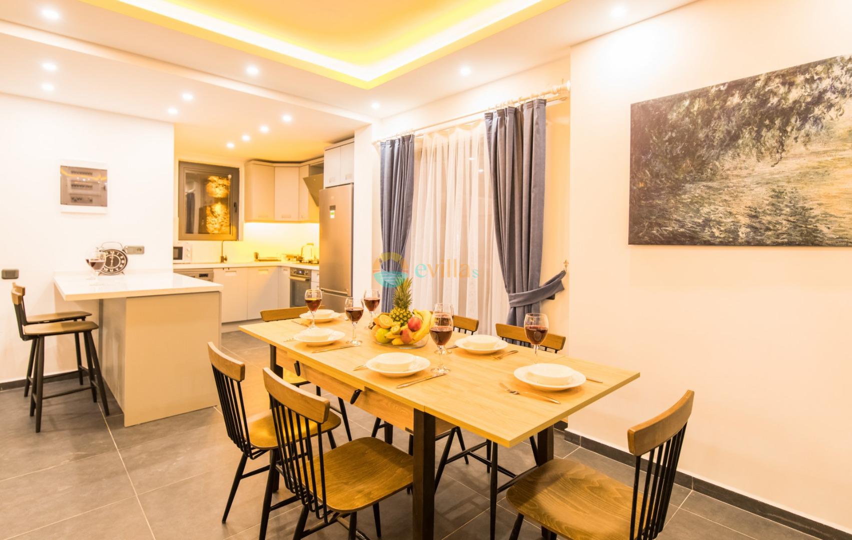 Unsere Villa ist eine Mietvilla mit einer sehr großen Struktur, 4 Schlafzimmern und einer Unterkunftskapazität von 10 Personen, gelegen in der Region Kalamar, dem einzigartigen Schönheitszentrum von Kalkan. Es ist eine ideale Villa, insbesondere für große Familiengruppen. Von Ihrem Zimmer aus können Sie bequem den Meerblick genießen. Ein Schlafzimmer verfügt über einen Whirlpool. Aufgrund der Nähe zum Zentrum und zum Meer gehört sie zu unseren am häufigsten bevorzugten Villen.