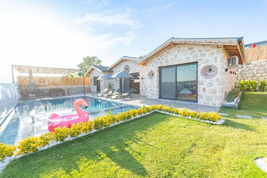 Unsere Villa ist eine Ferienvilla in der Region Çavdır in Kalkan. Diese Villa bietet Platz für 4 Personen. Es ist eine ideale Option für Kernfamilien oder Flitterwochenpaare. Die mit der Natur verbundene Lage zieht die Aufmerksamkeit auf sich und bietet gleichzeitig eine geschützte und konservative Umgebung. Gebaut mit luxuriöser Steinarchitektur, bietet die Villa den Gästen einen besonderen Rückzugsort. Der Whirlpool, der Kinderspielplatz und das Kinderbecken in der Villa bieten ein komfortables und angenehmes Wohnerlebnis. Mit ihrem großen Garten bietet unsere Villa eine romantische Atmosphäre für Flitterwochenpaare und eine unvergessliche Urlaubsmöglichkeit für Kleinfamilien.