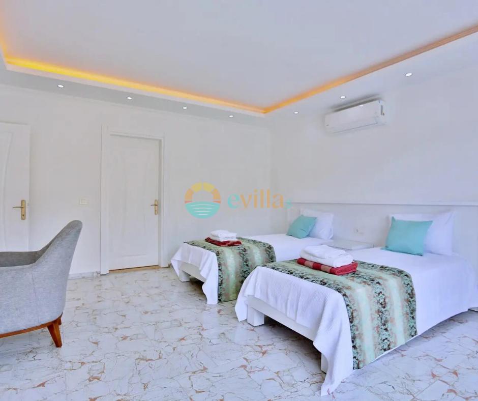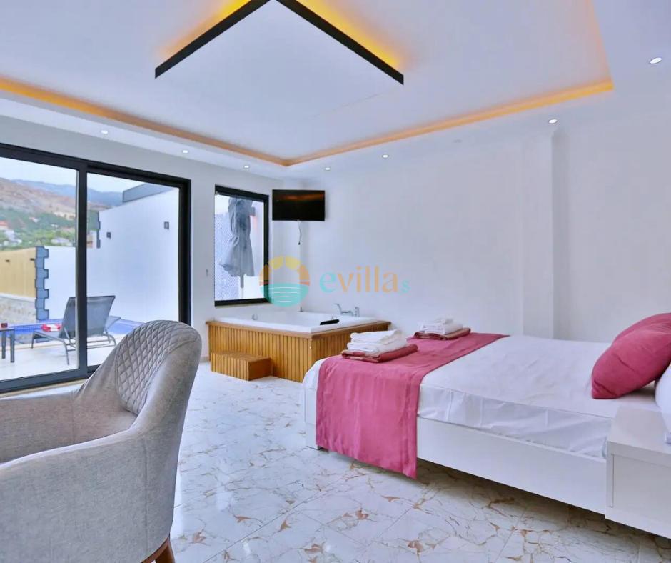 Villa zu vermieten mit Pool Kalkan: Gäste, die diese Villa betreten, werden vom Charme einer freistehenden Residenz inmitten der Natur begrüßt. Das Design der Villa strahlt ein Gefühl von Komfort und Raffinesse aus, mit einem geräumigen Innenraum, der mit zeitgenössischen Möbeln und modernen Annehmlichkeiten ausgestattet ist. Das Highlight dieses Rückzugsortes ist zweifellos der private Swimmingpool, der an heißen Sommertagen eine erfrischende Abwechslung bietet. Umgeben von üppigem Grün bietet der Poolbereich eine abgeschiedene Oase der Entspannung und Unterhaltung und ist somit der perfekte Ort zum Entspannen inmitten der ruhigen Schönheit der Umgebung.