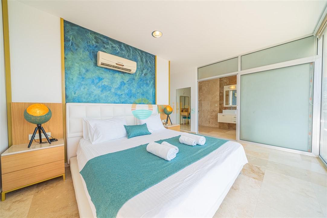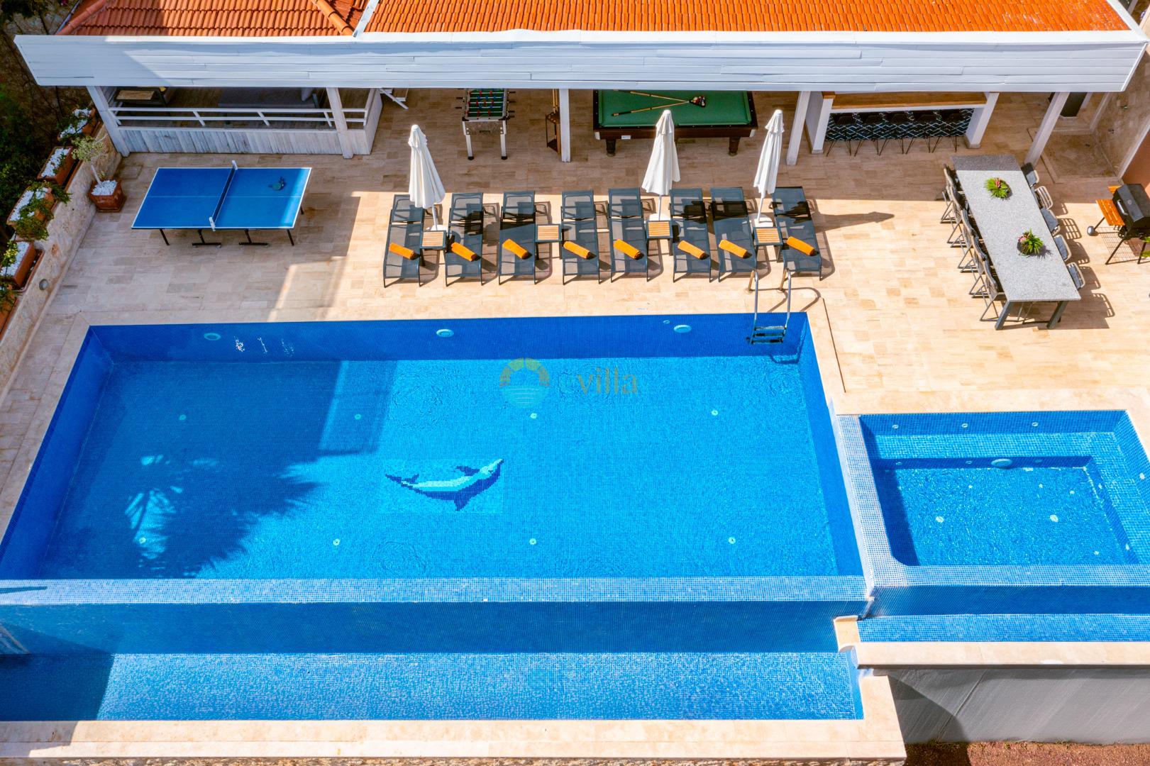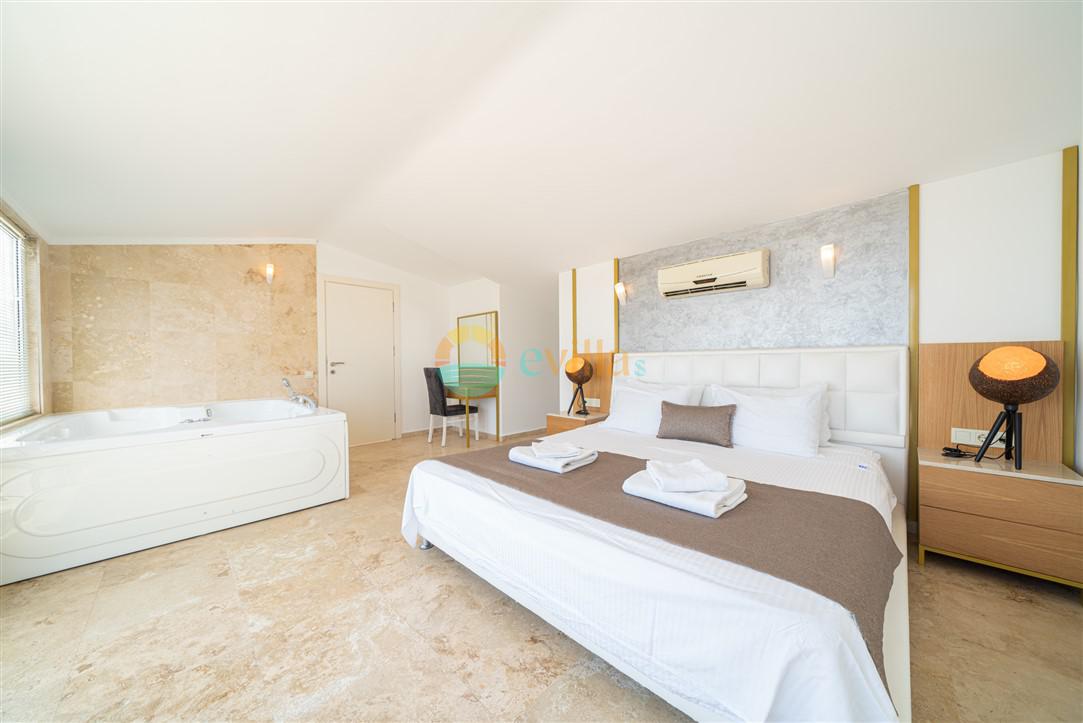 Unsere Villa in der Bucht von Kalkan Kalamar, die einen einzigartig schönen Blick auf das Meer und die Natur bietet, verfügt über 6 Schlafzimmer und eine Unterkunftskapazität von 12 Personen. Unsere Villa bietet problemlos Platz für überfüllte Familien und Gruppen von Freunden und liegt nur wenige Gehminuten vom Strand, dem Markt, Restaurants und Unterhaltungsmöglichkeiten entfernt. Unsere Villa ist ideal für unsere Gäste, die einen Sommerurlaub ohne Auto planen. Im malerischen Garten unserer Villa gibt es einen Pool, in dem Sie unvergessliche und unterhaltsame Stunden verbringen können, Sonnenliegen, eine Sitzecke und einen Esstisch, an dem Sie Ihr Abendessen einnehmen und dabei den Sonnenuntergang beobachten können. Sie werden die Villa nicht mit dem Blau des Meeres, dem Grün der Natur und dem Rot des Himmels verlassen wollen. Dank der bodentiefen Fenster können Sie von allen Räumen unserer modern und geschmackvoll eingerichteten Villa aus den Ausblick ungehindert genießen. In einem der stilvoll eingerichteten Schlafzimmer unserer Villa befindet sich ein Whirlpool.