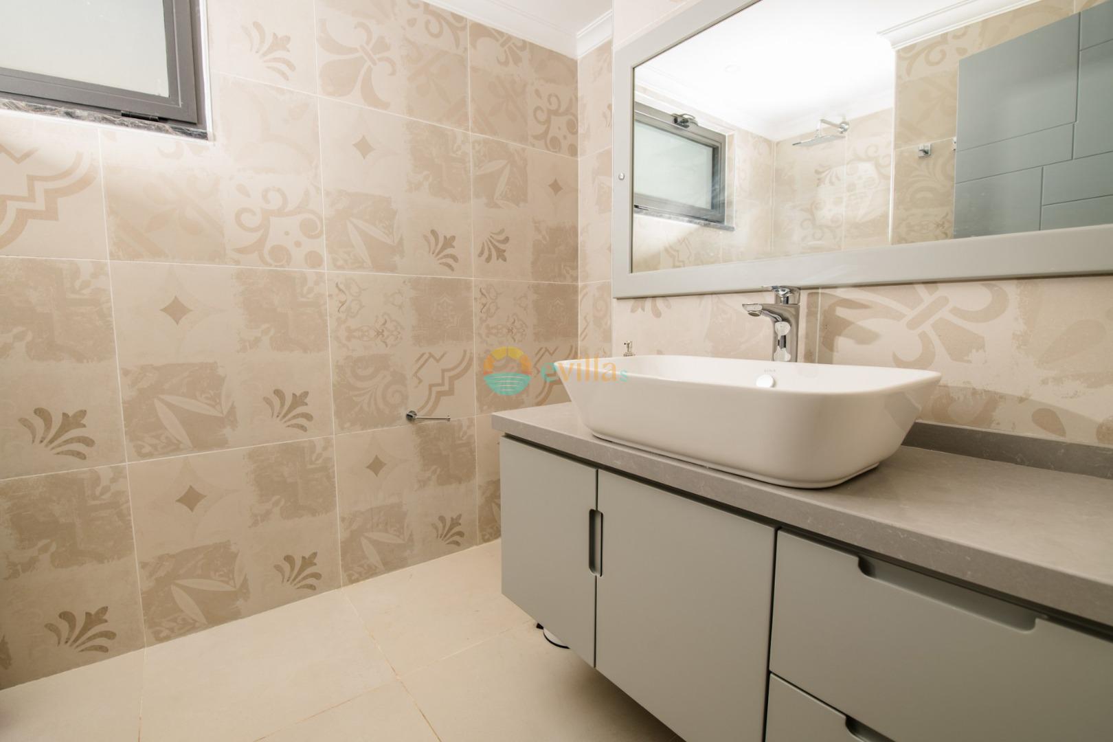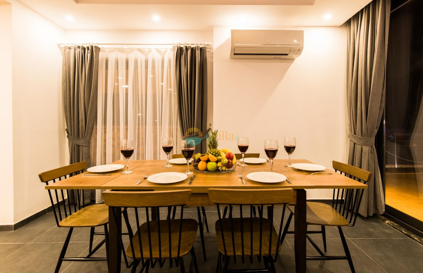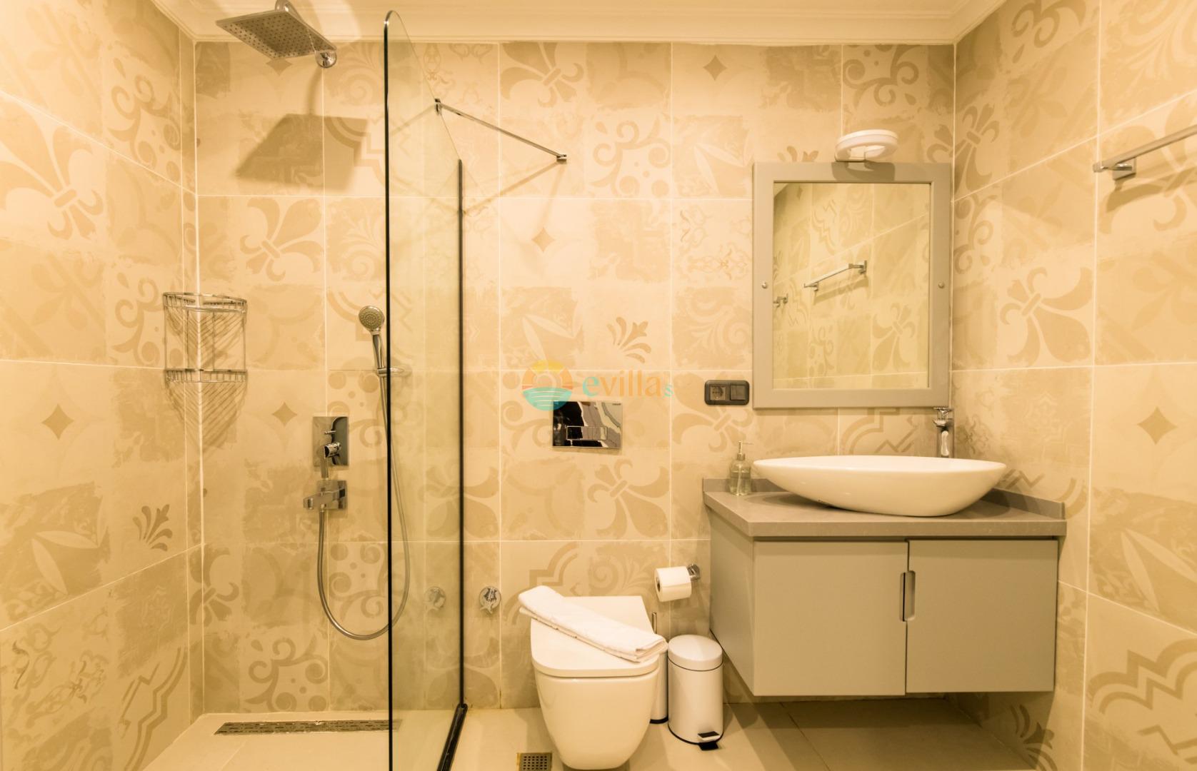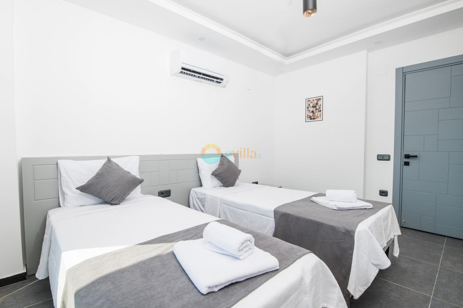 Das Wohnzimmer mit Aussicht verfügt über eine gemütliche Sitzecke, TV, Klimaanlage, Couchtisch und DVD-Player. Vom Wohnzimmer gibt es einen Ausgang zur Poolterrasse.